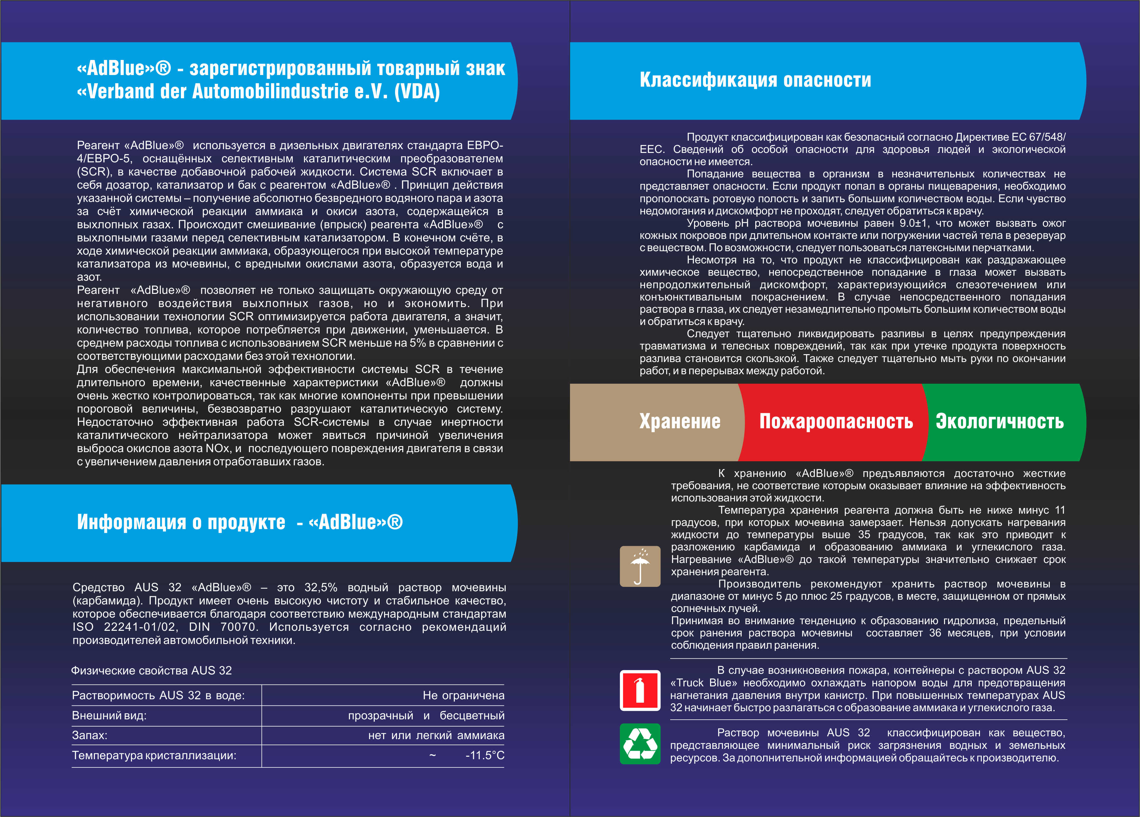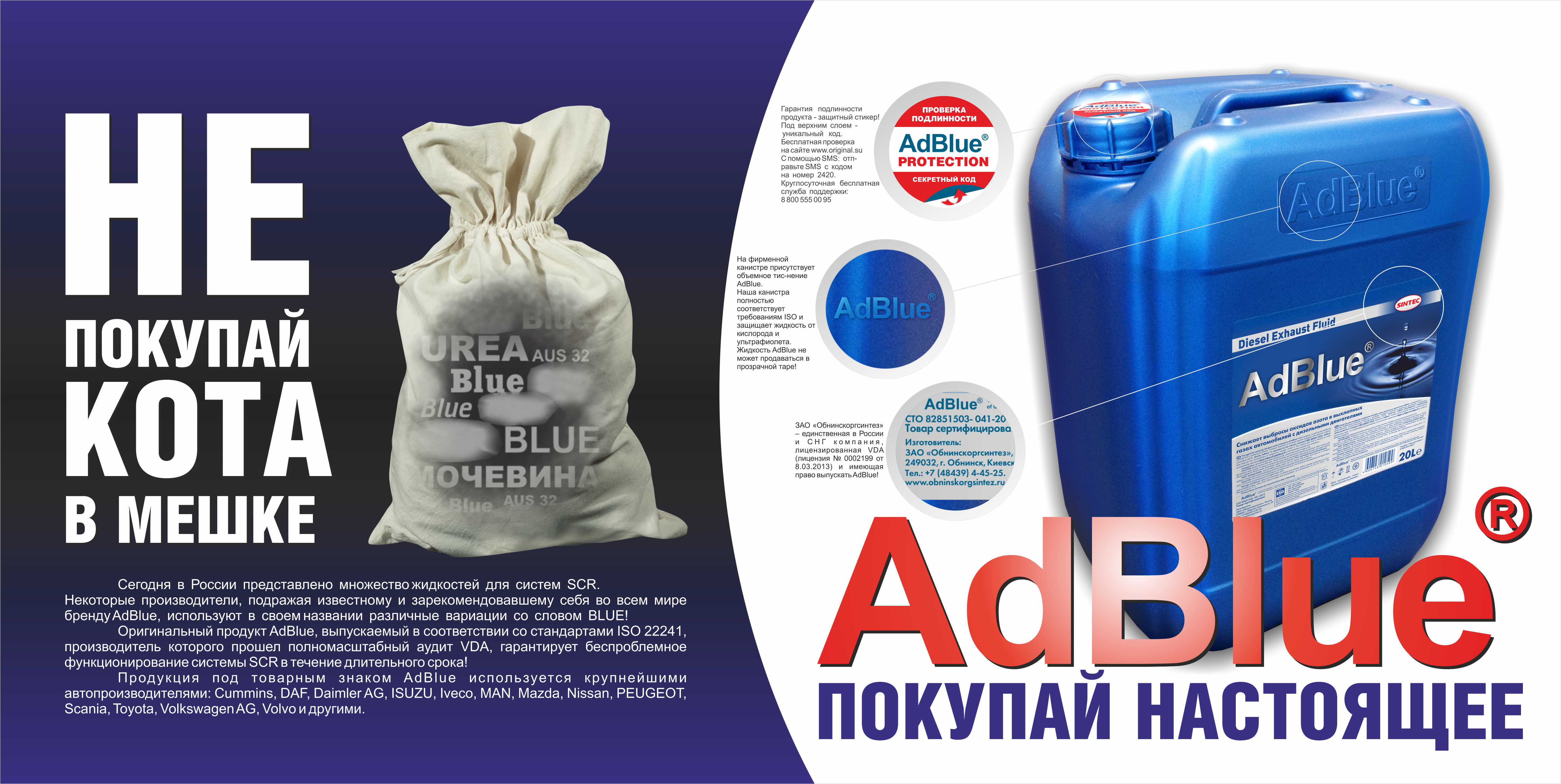 Оригинальный продукт «AdBlue®», выпускаемый в соответствии со стандартом ISO 22241, производитель которого прошел полномасштабный аудит VDA, гарантирует Вам качественное и бесперебойное функционирование системы SCR в течение длительного срока!